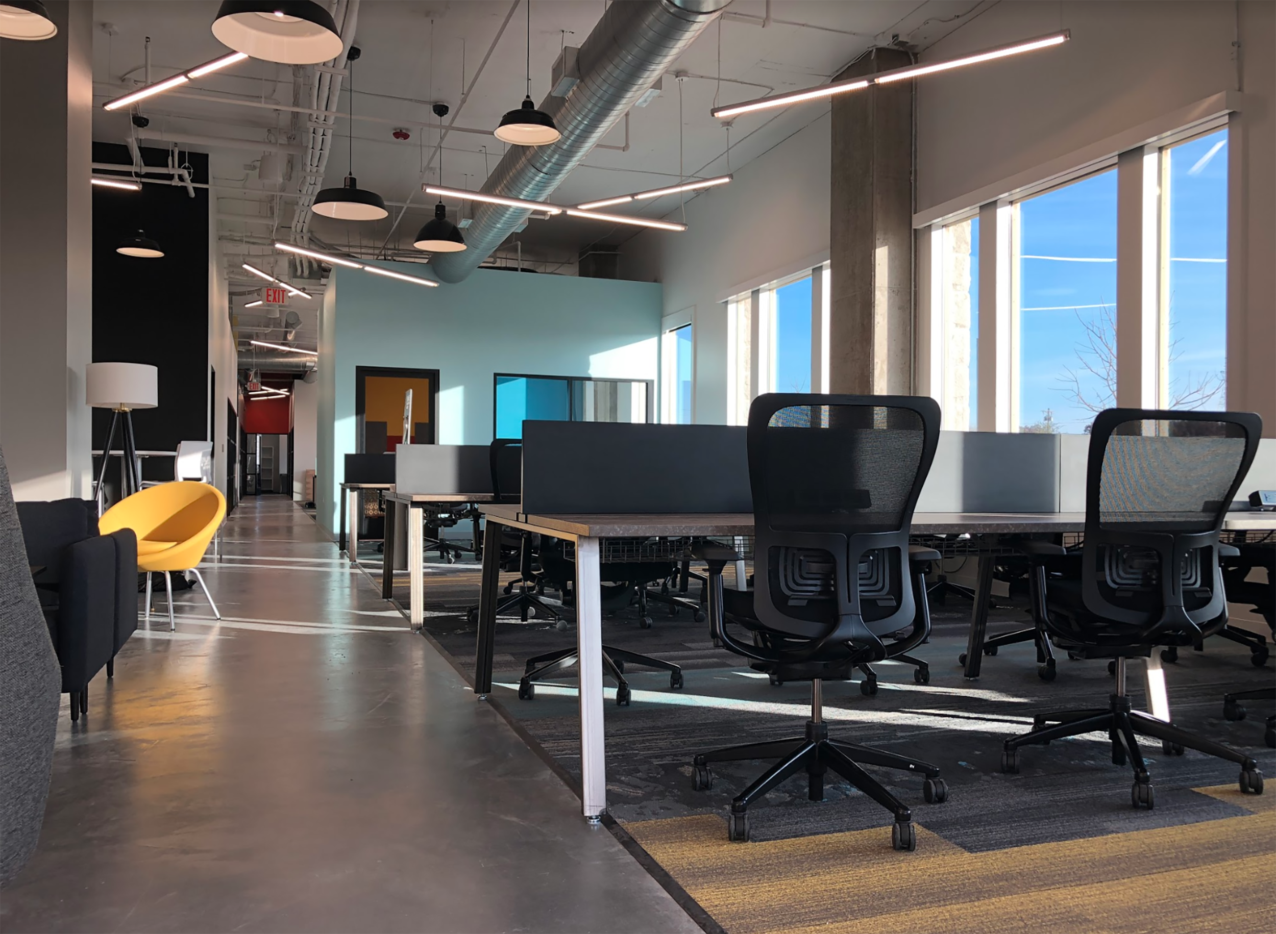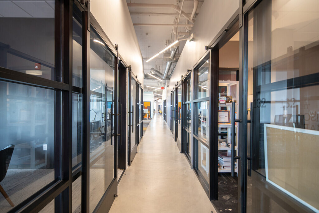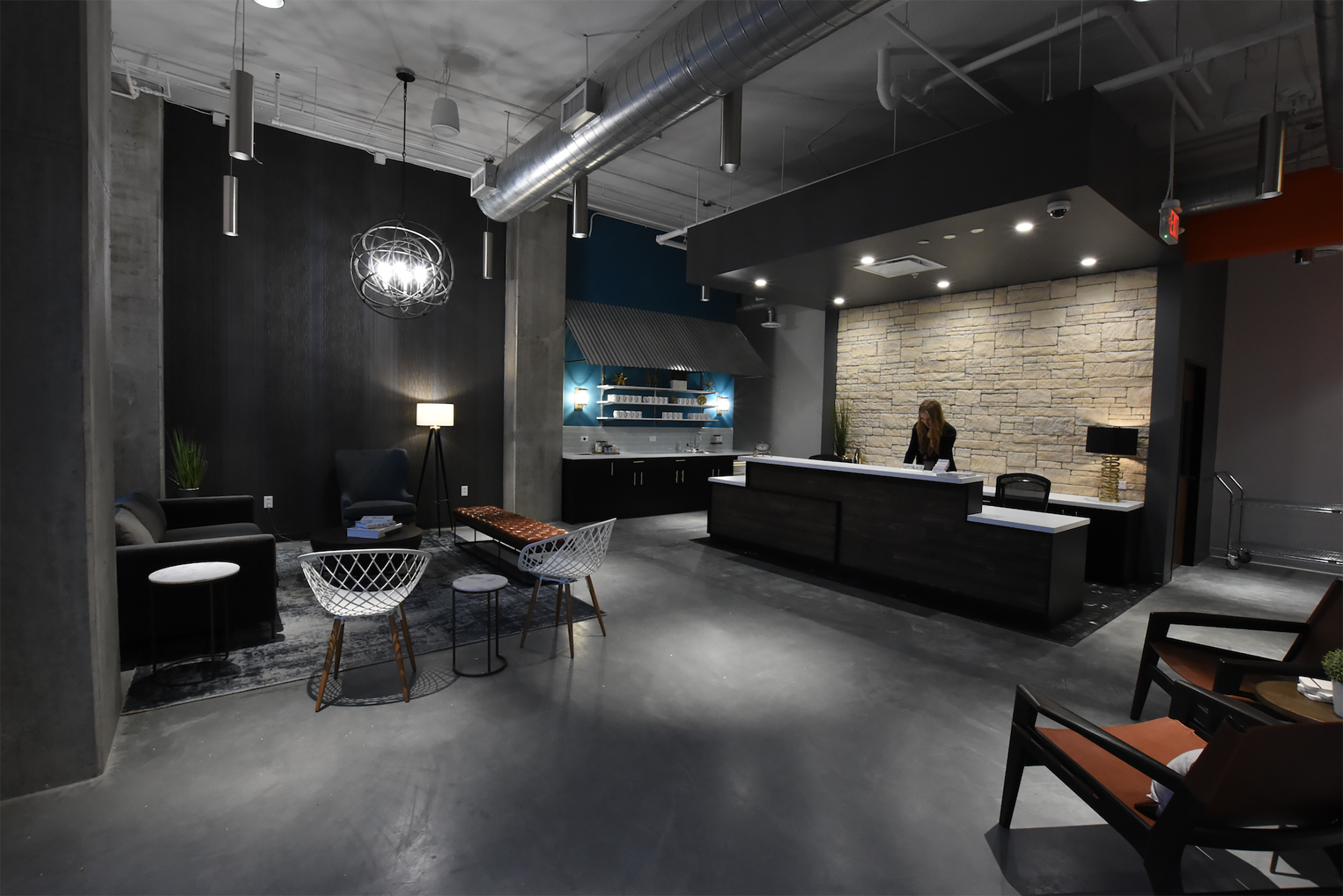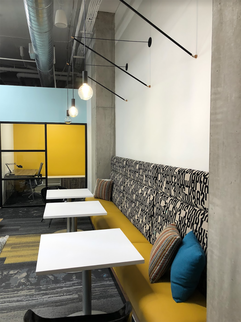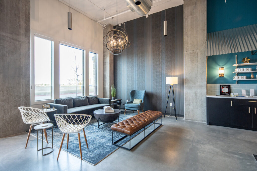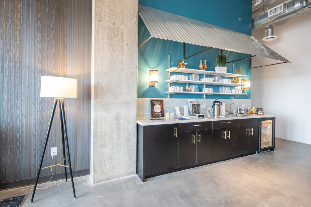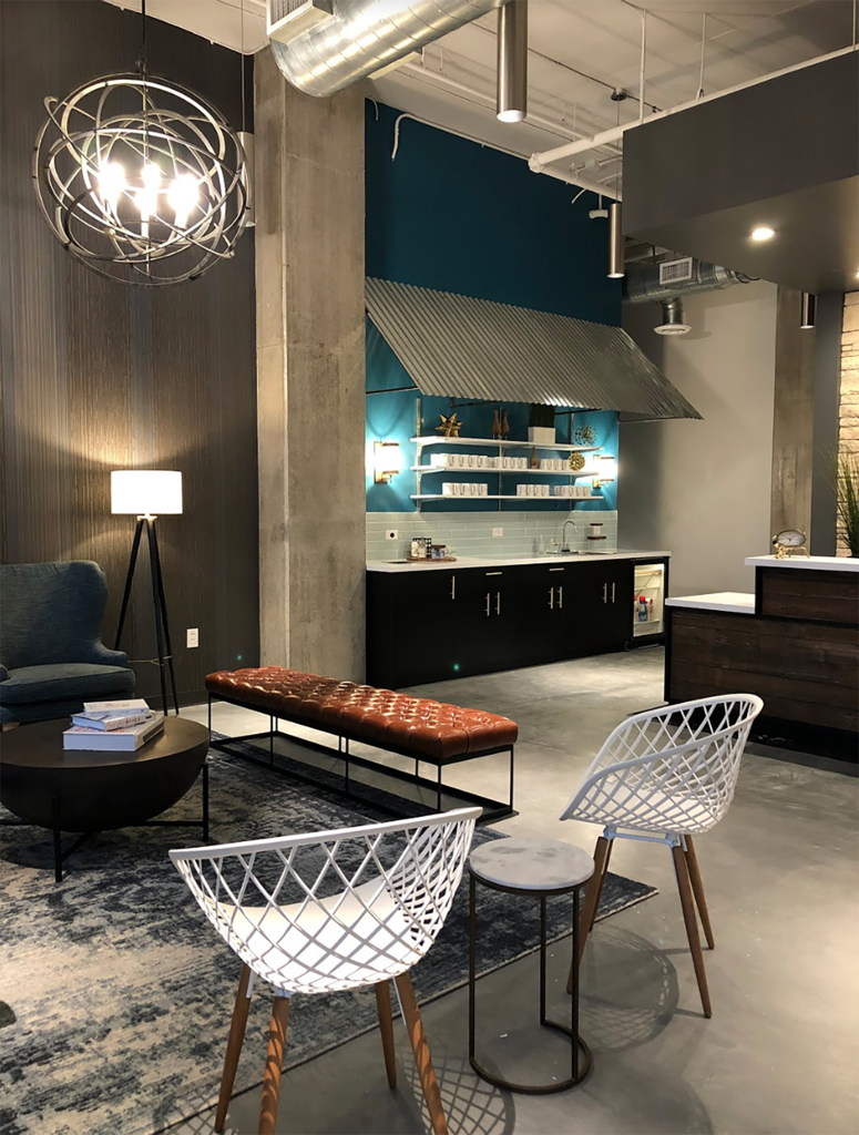 After a successful launch of their Arlington Heights, IL, development, Stoneleigh Properties engaged Workplace Studio to design a similar coworking space at their ground-up multifamily development project under construction in Frisco, TX. The continued vision of the owner and coworking operator was to develop an amenity-rich workspace for both tenants and the public in the entirety of their retail first floor space.