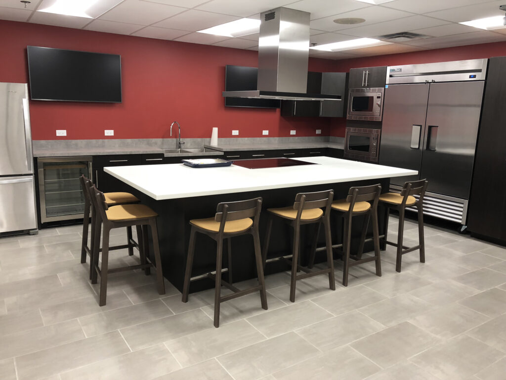Workplace Studio partnered with Edlong Dairy Technologies to support their long-term growth through the evaluation of renovation and new campus development options for their corporate headquarters. Ultimately moving forward with a phased renovation known as “Project Energize,” Workplace Studio reorganized departments to enhance collaboration, refreshed finishes and furnishings to align with updated brand standards, and modernized functional spaces to support future growth. The project also included upgraded lab environments and the creation of a high-tech Culinary Studio designed to showcase Edlong’s offerings for both in-person and remote client engagement.