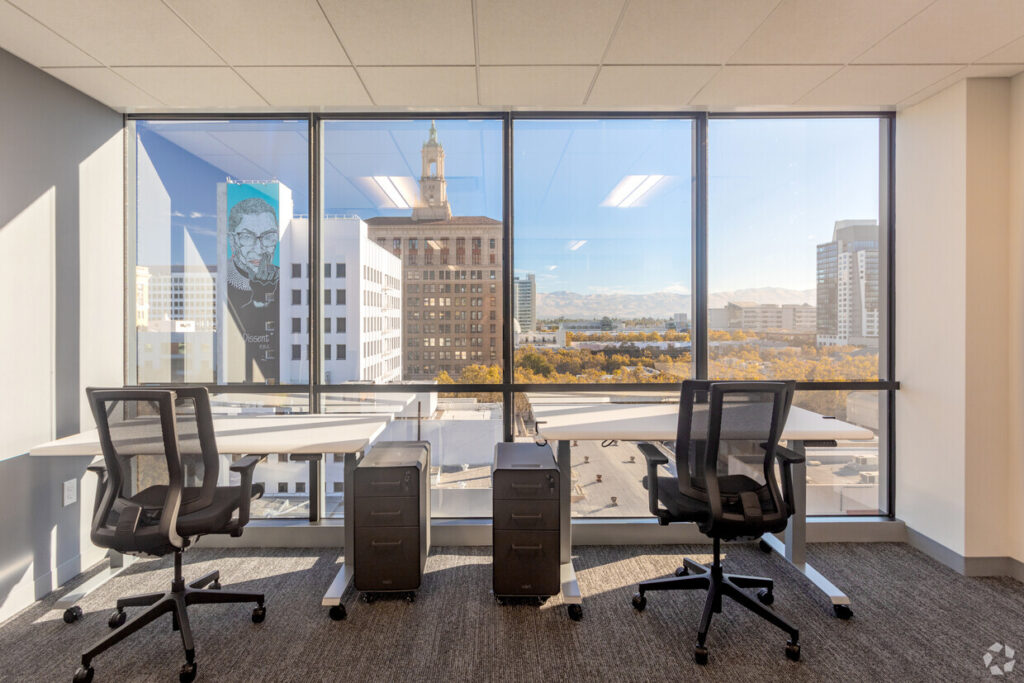 Pacific Workplaces’ San Jose location was at 100% occupancy with a strong meeting room business when their lease was approaching expiration, leading ownership to relocate to a refreshed, rebranded space better aligned with future growth. Workplace Studio’s initial role included conducting site surveys, developing test fits, and providing budget analyses for multiple locations to support the final site selection. At the new location, occupants exit the elevator directly into an open and inviting community space. Workplace Studio designed an efficient and productive operational environment for the on-site team, centralized meeting rooms to support hospitality excellence, and enhanced workspaces—all within a reduced overall footprint.