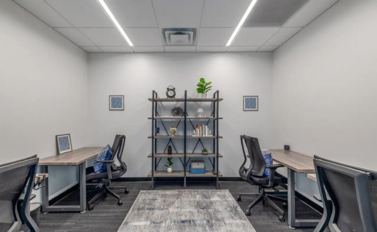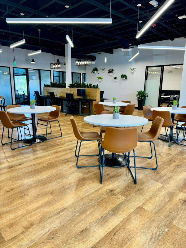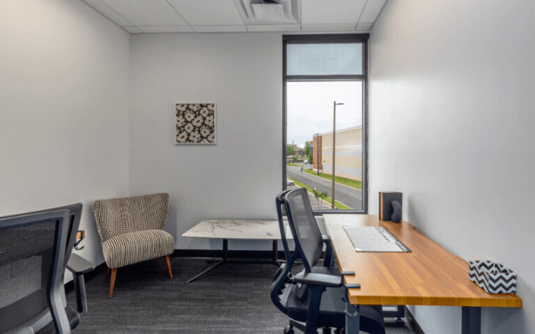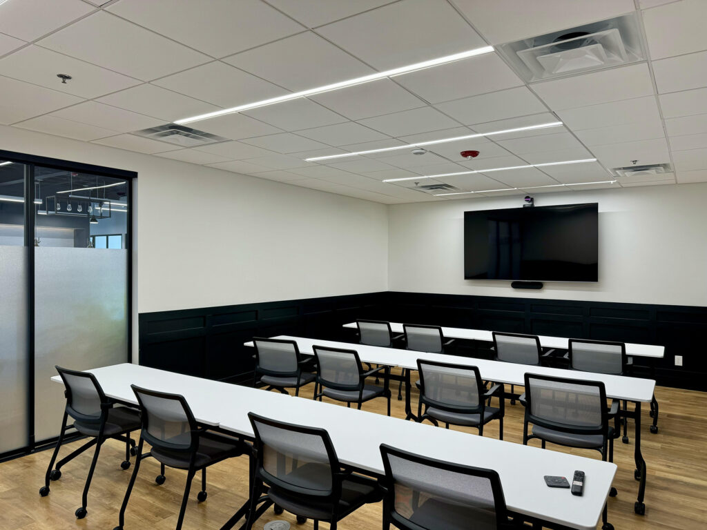 A successful franchisee group secured a new two-story space for a ground-up Venture X coworking location in Fort Mill, SC. The vision was to create a space that adhered to Venture X brand standards, developed by Workplace Studio, while incorporating upgraded materials, finishes, and a local character to better serve the Fort Mill community. Workplace Studio created a standout design that fulfilled this vision while enhancing operational efficiency and member engagement.